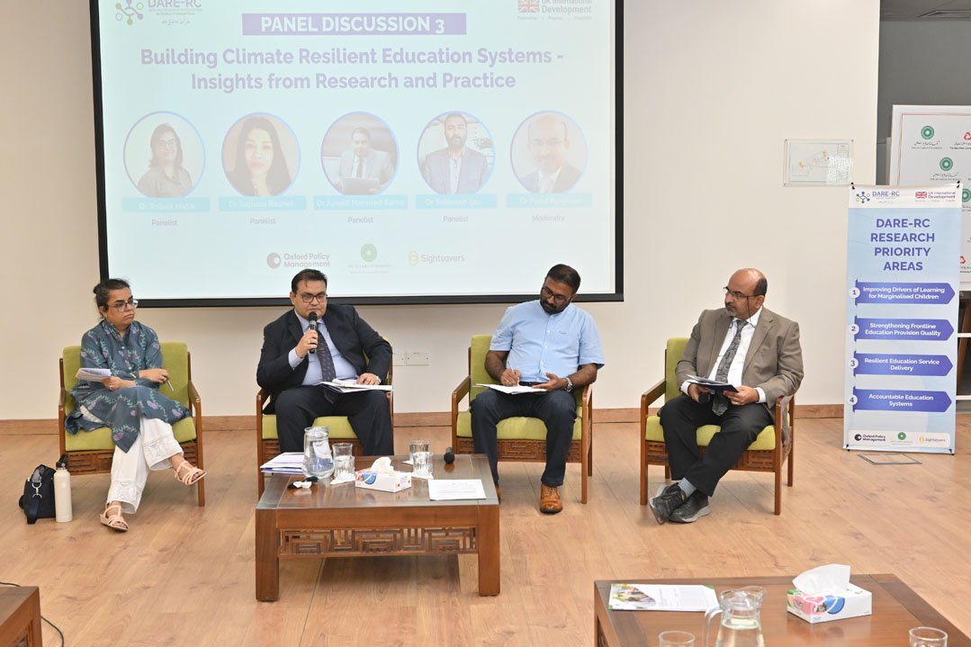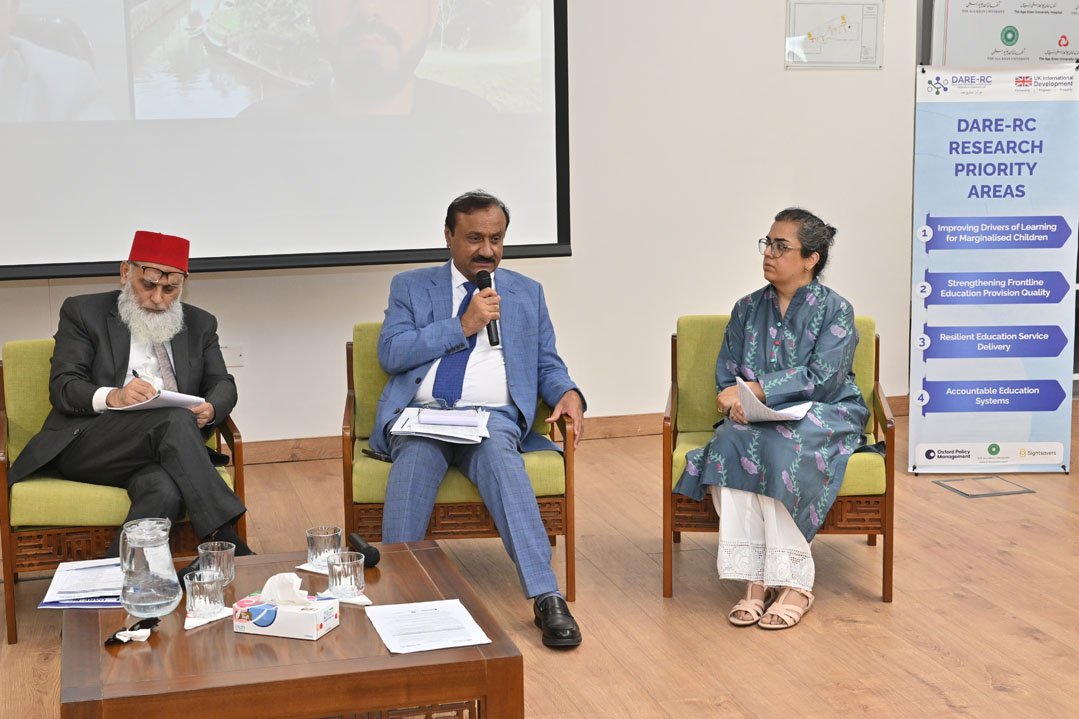 Dr. Dilshad Ashraf, Deputy Research Director of DARE-RC, highlighted the consortium’s research agenda, focusing on improving learning outcomes for marginalised children and developing resilient education systems.