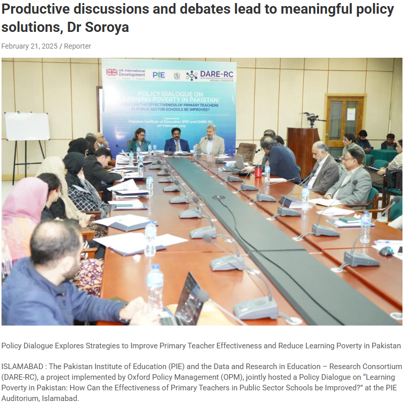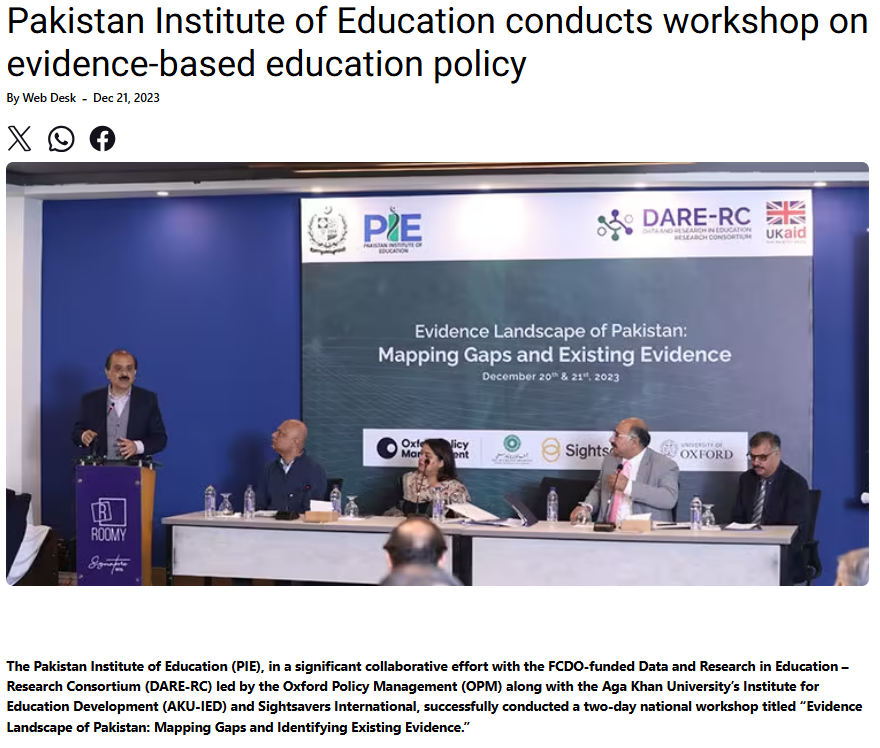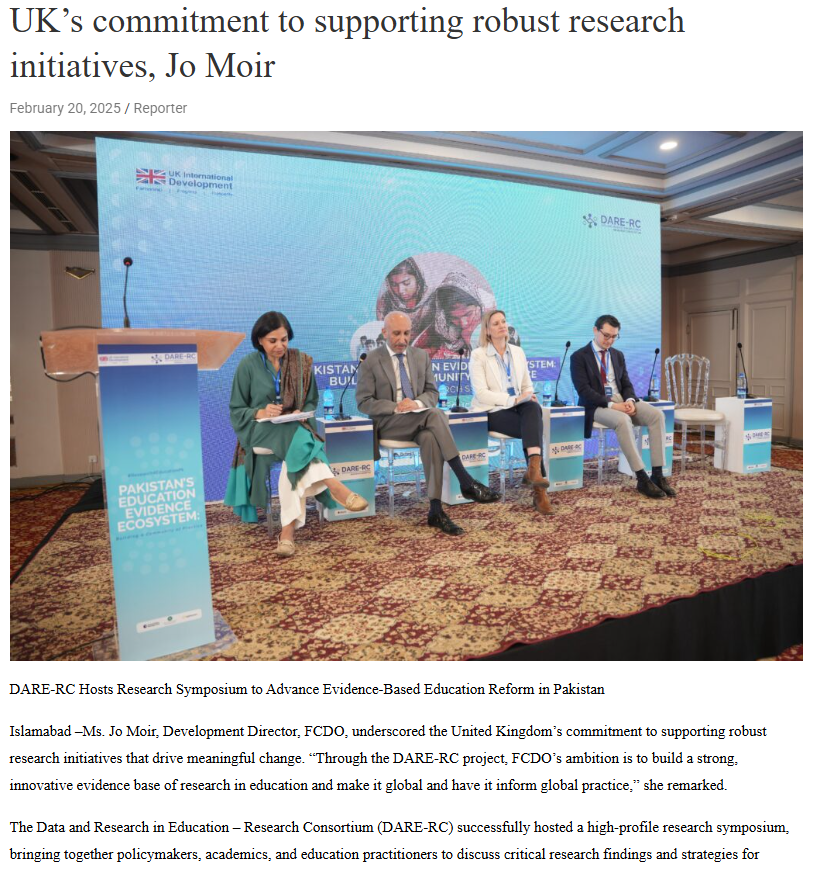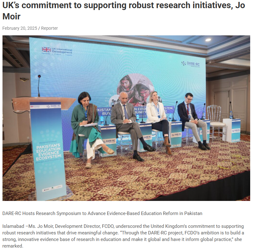 DARE-RC Hosts Research Symposium to Advance Evidence-Based Education Reform in Pakistan