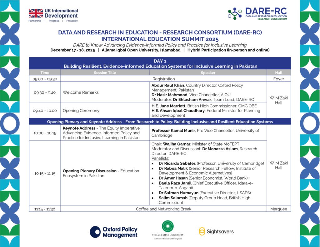 Under the theme “DARE to Know: Advancing Evidence-Informed Policy and Practice for Inclusive Learning” the summit will explore: